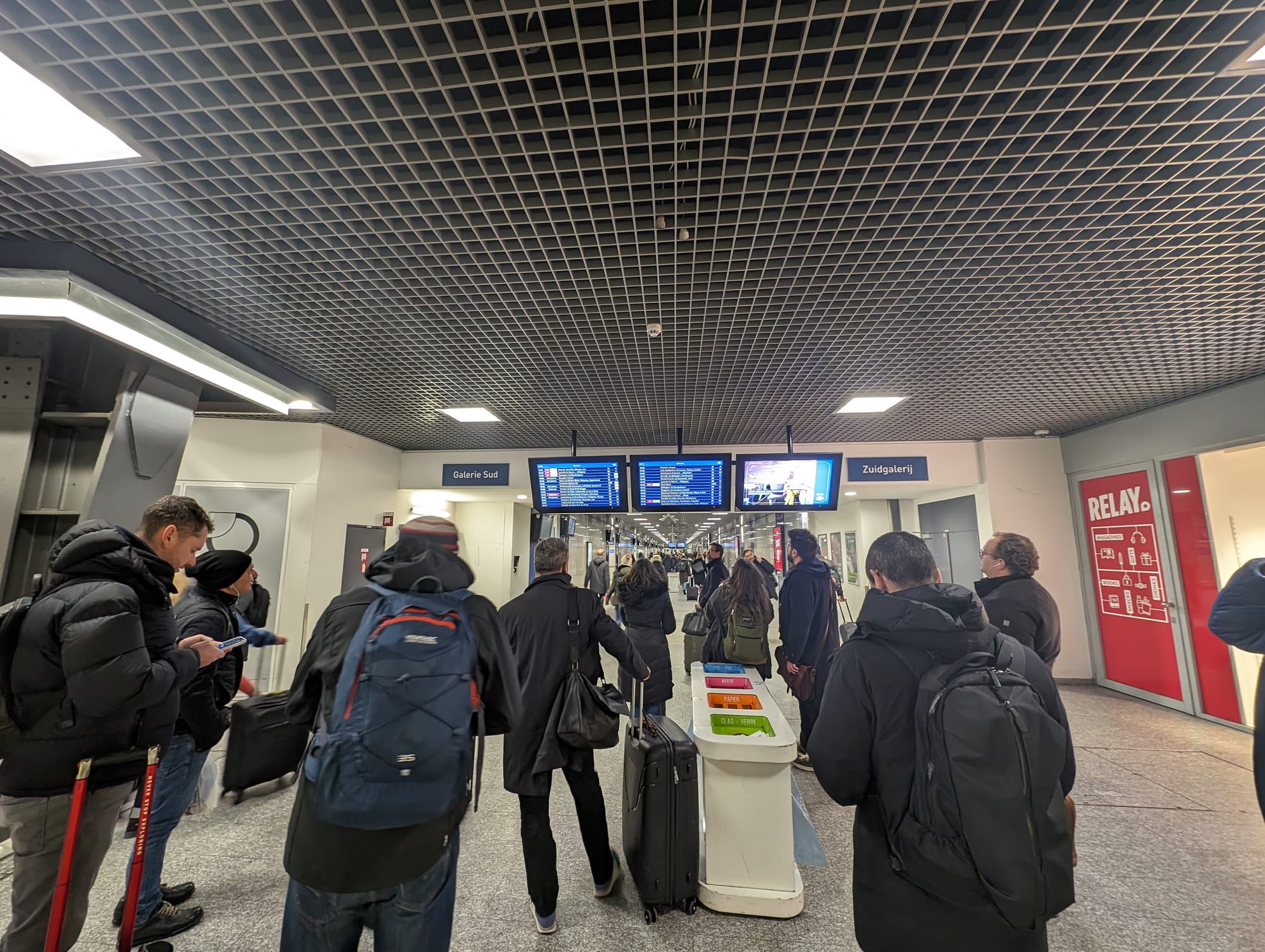 Brussels station still had its Christmas lights up. Well, down. On the floor. Was this foreboding? A sign of impending misfortune? Unlucky Leon lit up by lights loses likelihood of returning back without incident? Perhaps.