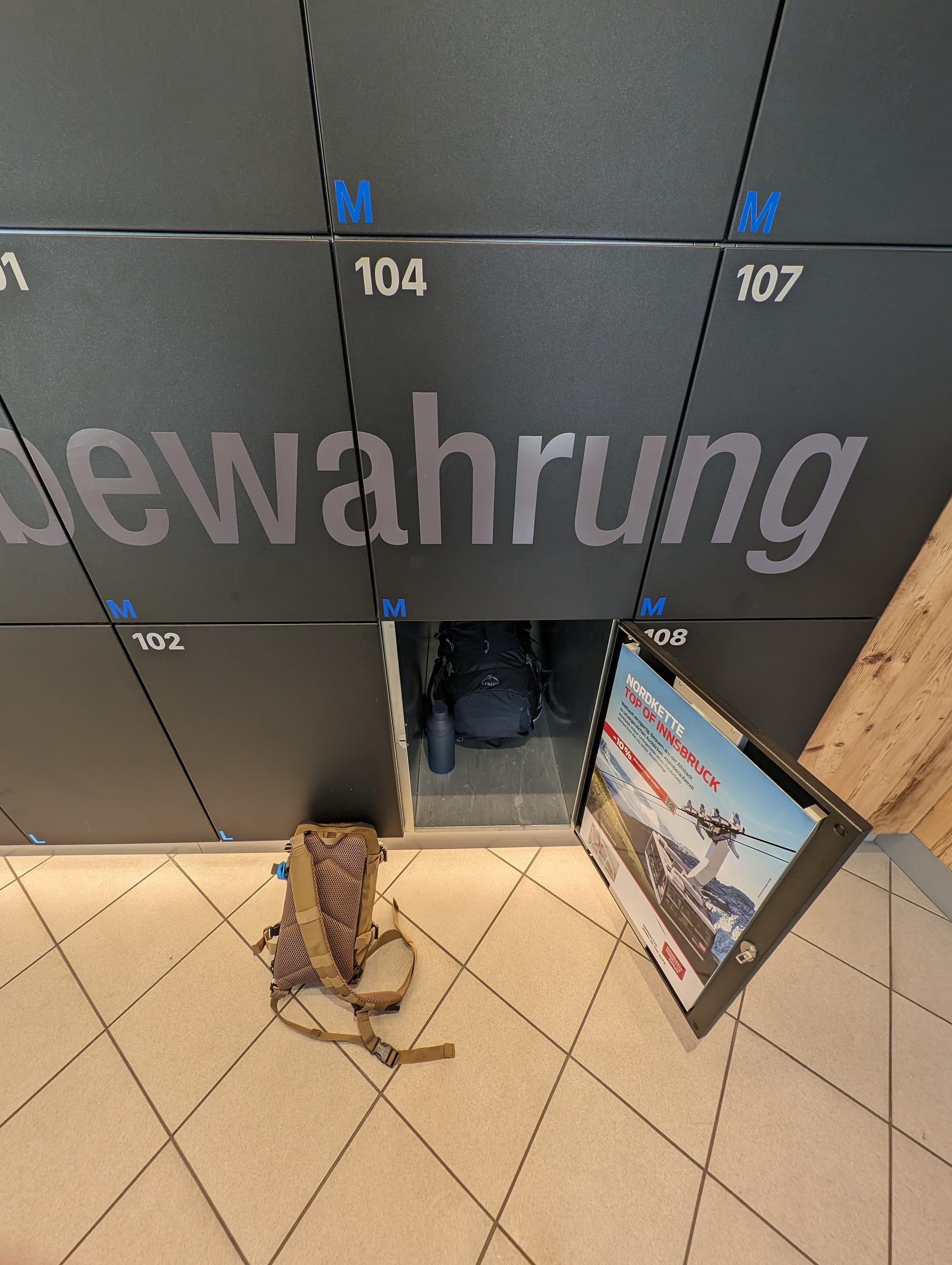 A few phone snaps of the journey up, and the less mouthy bag storage in Innsbruck which are dotted around all over.