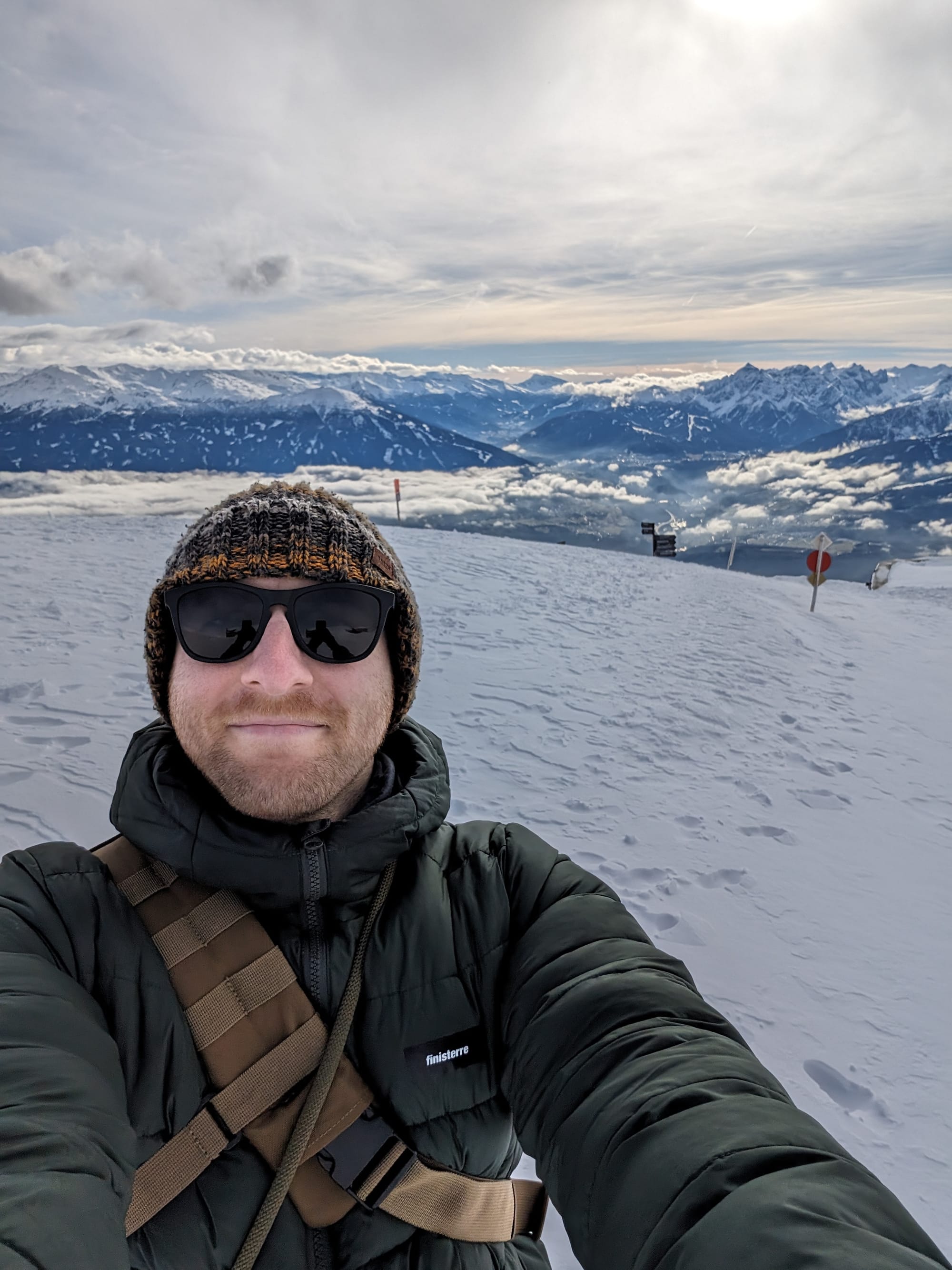 Post-early morning arrival, Day 1 was spent exploring the immediate neighbourhood and all that Innsbruck had to offer. The view across the river to the city, and beyond it the snow topped mountains was a novel sight, and naturally had me reaching for the nearest go-pro to capture both sunrise and sunset. I decided to reach for said mountain - and face to face with the first of many death-defying stunts, aka solo-ing the cable cars. The views from name-of-mountain were incredible, and the sunshine helped dissolve the travel-hangover from the soul.