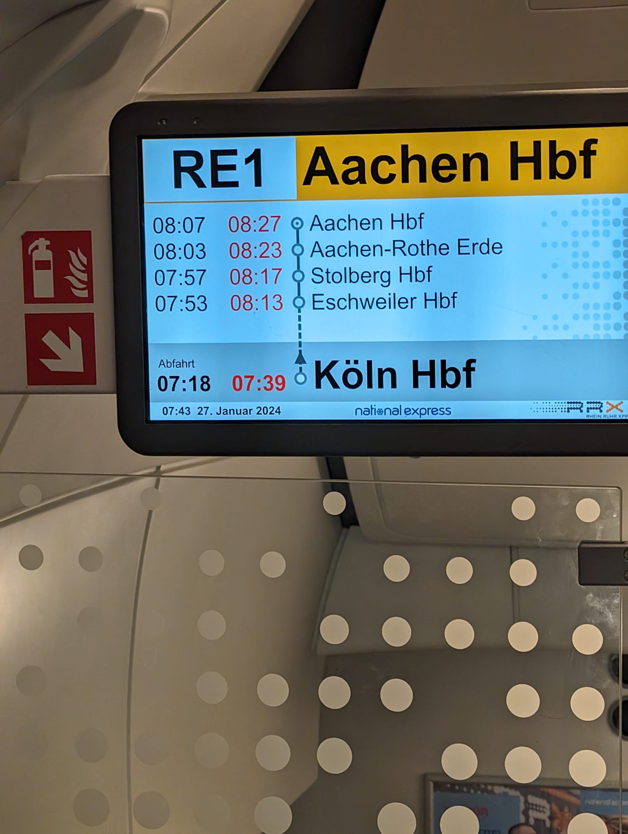 At 7am, a new player entered the arena; my Bedminster oracle (in the Batman sense), Kate on the keyboard to help me navigate the 209km from Koln to Brussels. 3 hours to do a 2 hour journey with every other train being cancelled at short notice. Circumnavigating sleep herself, KP manage to route a route through the minefield of cancellations to produce another new journey, a local stopping service made up of three trains; Cologne to Aachen, Aachen to Liege, and Liege to Brussels.