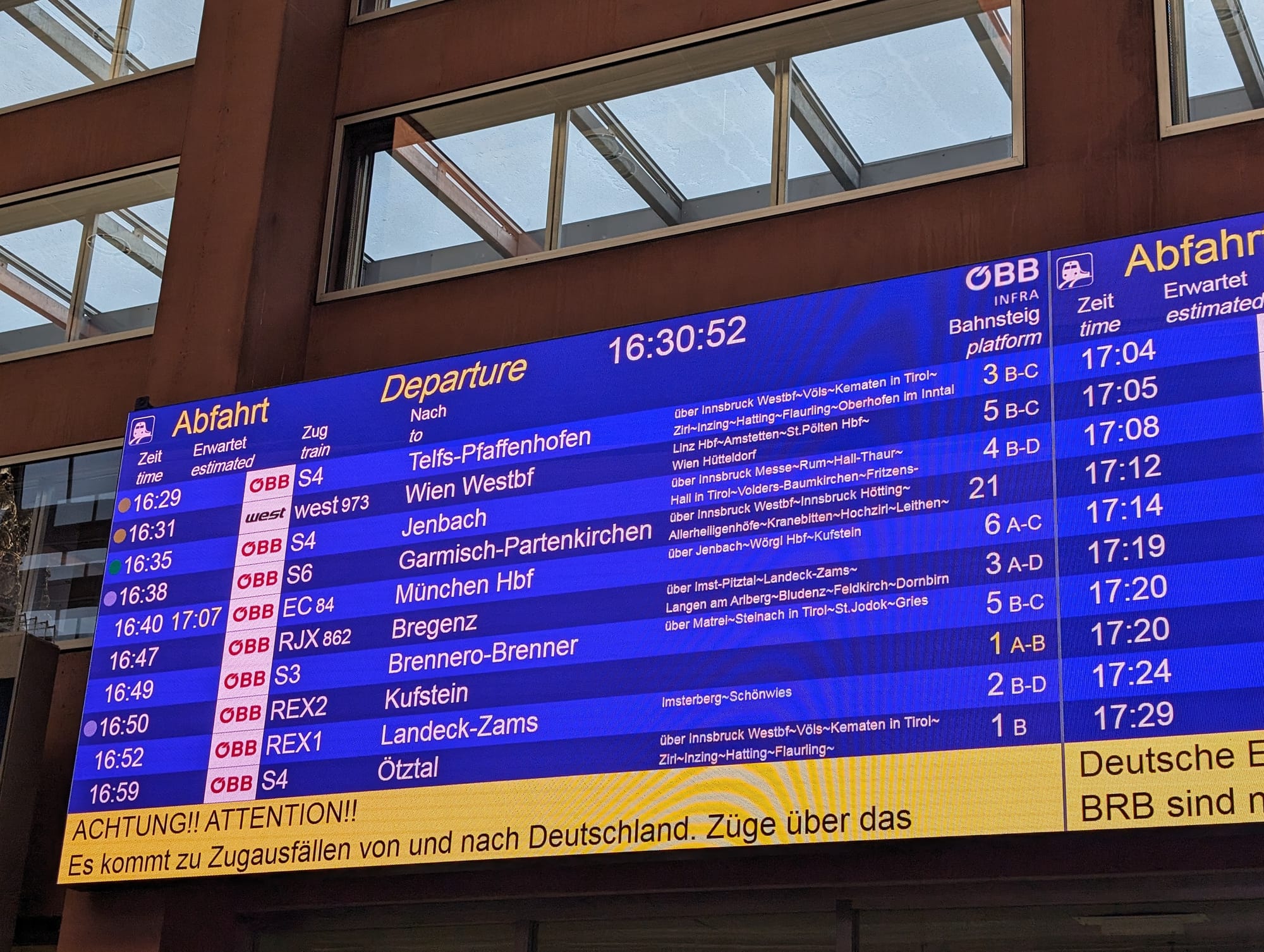 | Innsbruck to Munich | Cancelled (3 hours notice) |